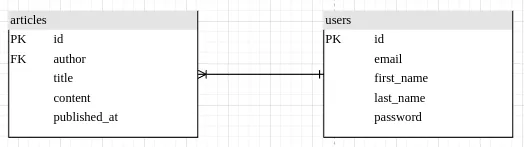 Dans la description de la table articles, on voit que la FK est la colonne author. Cette dernière va pointer vers la PK de la table users.